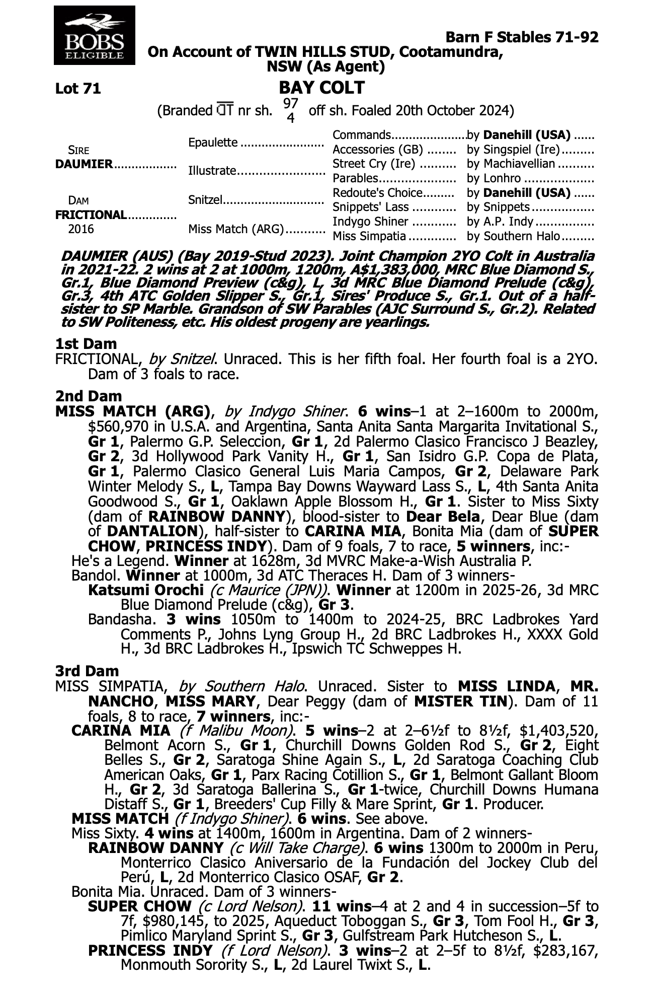 Lot 71 Daumier x Frictional colt